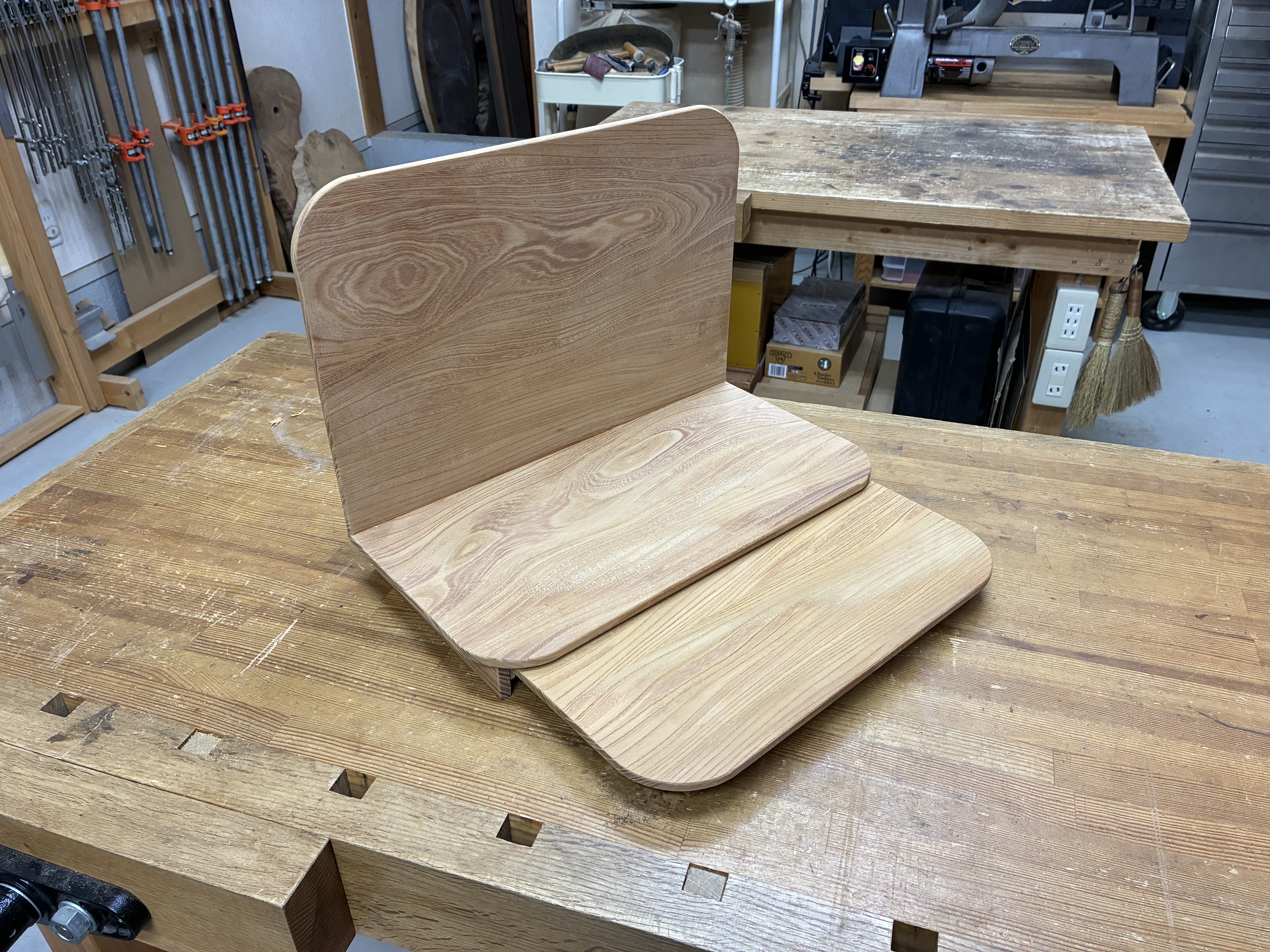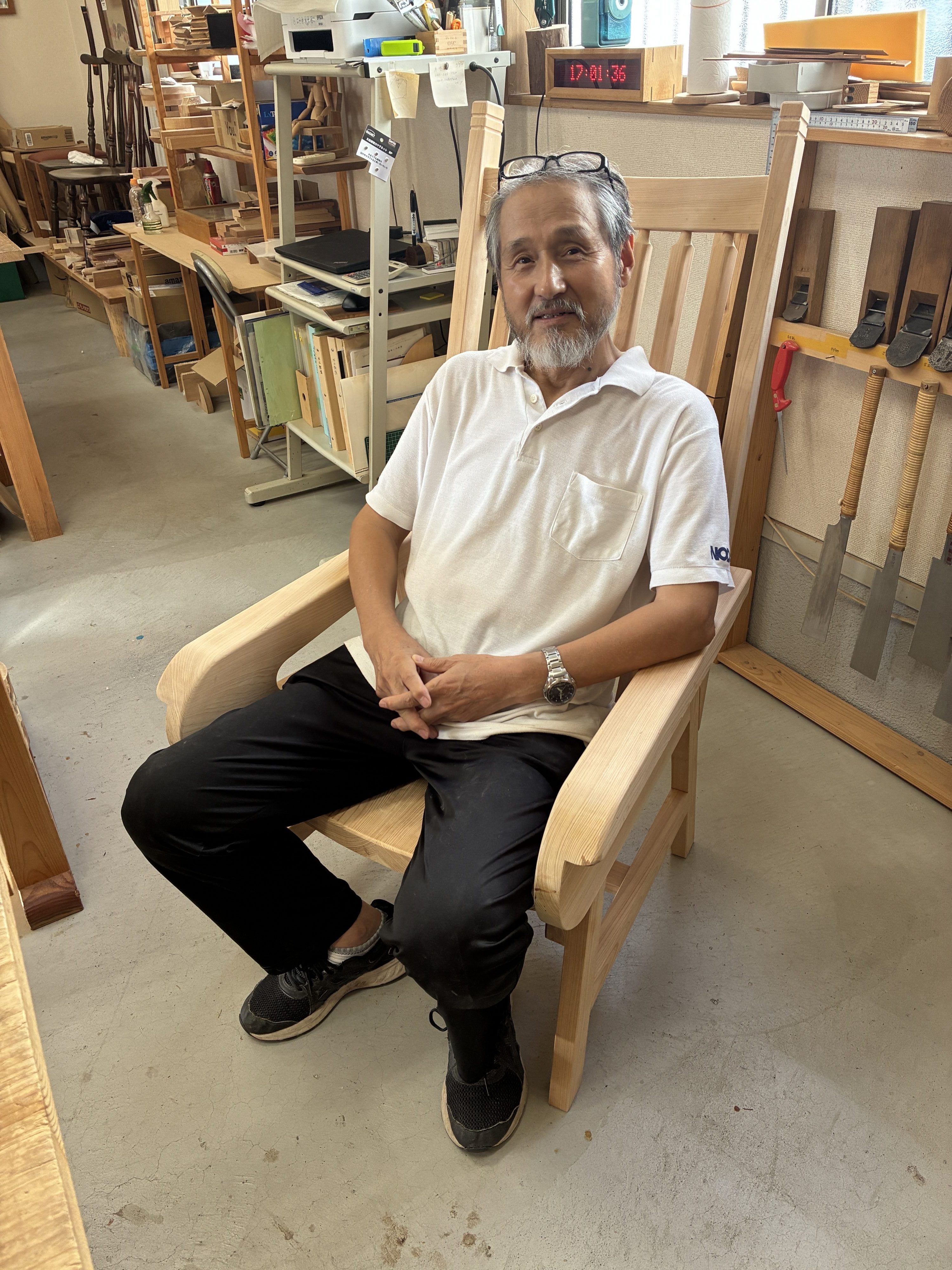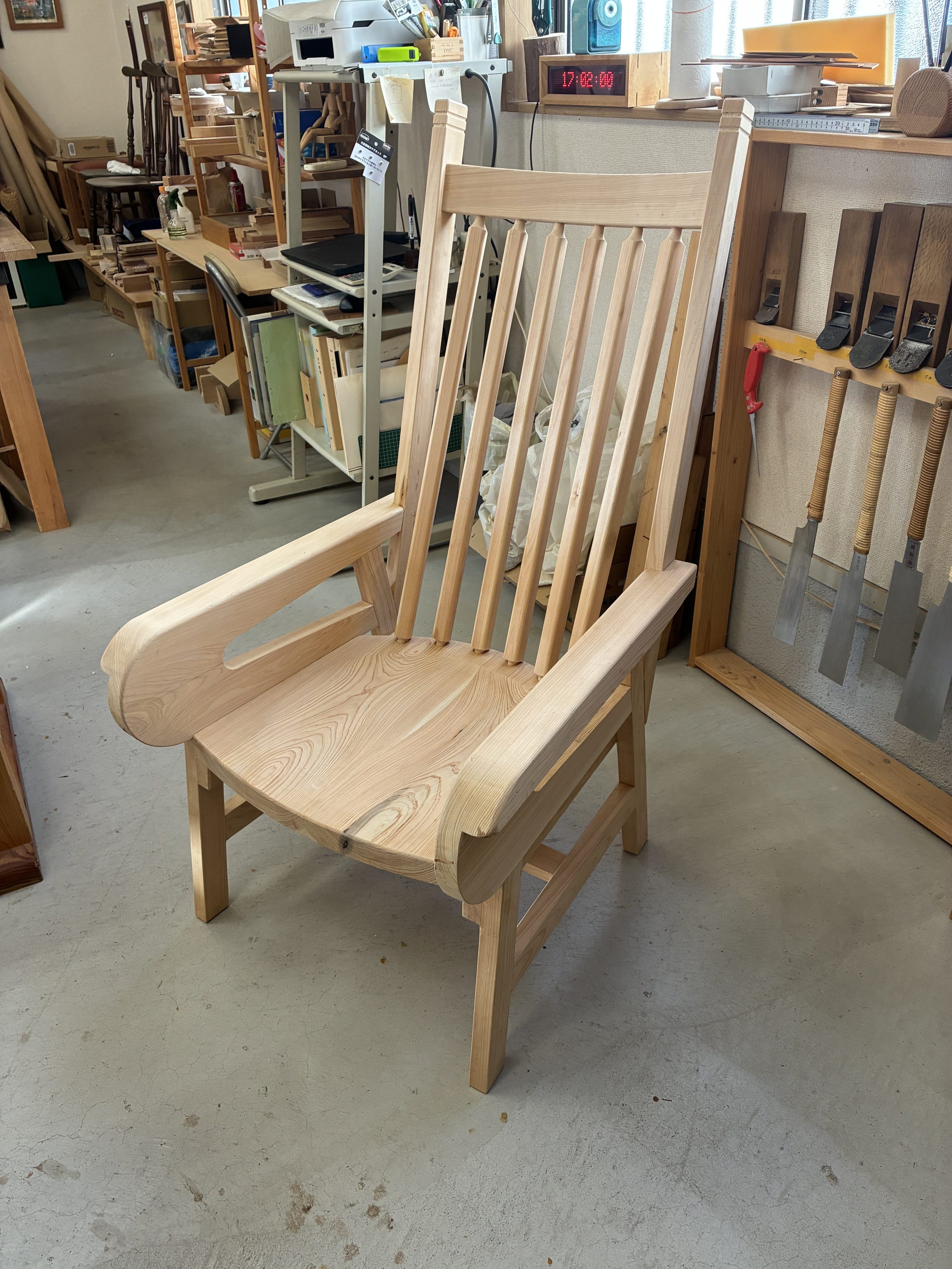 11.私の高校の同級生でもあるYRさんの作品を最後にご紹介。昨年後半から手掛けていた特大リラックス椅子が遂に完成しました。彼の家の裏山に生えていたヒノキが5-6年前に台風で倒れたのですがその材が十分乾燥するのを待って今回椅子に生まれ変わりました。
