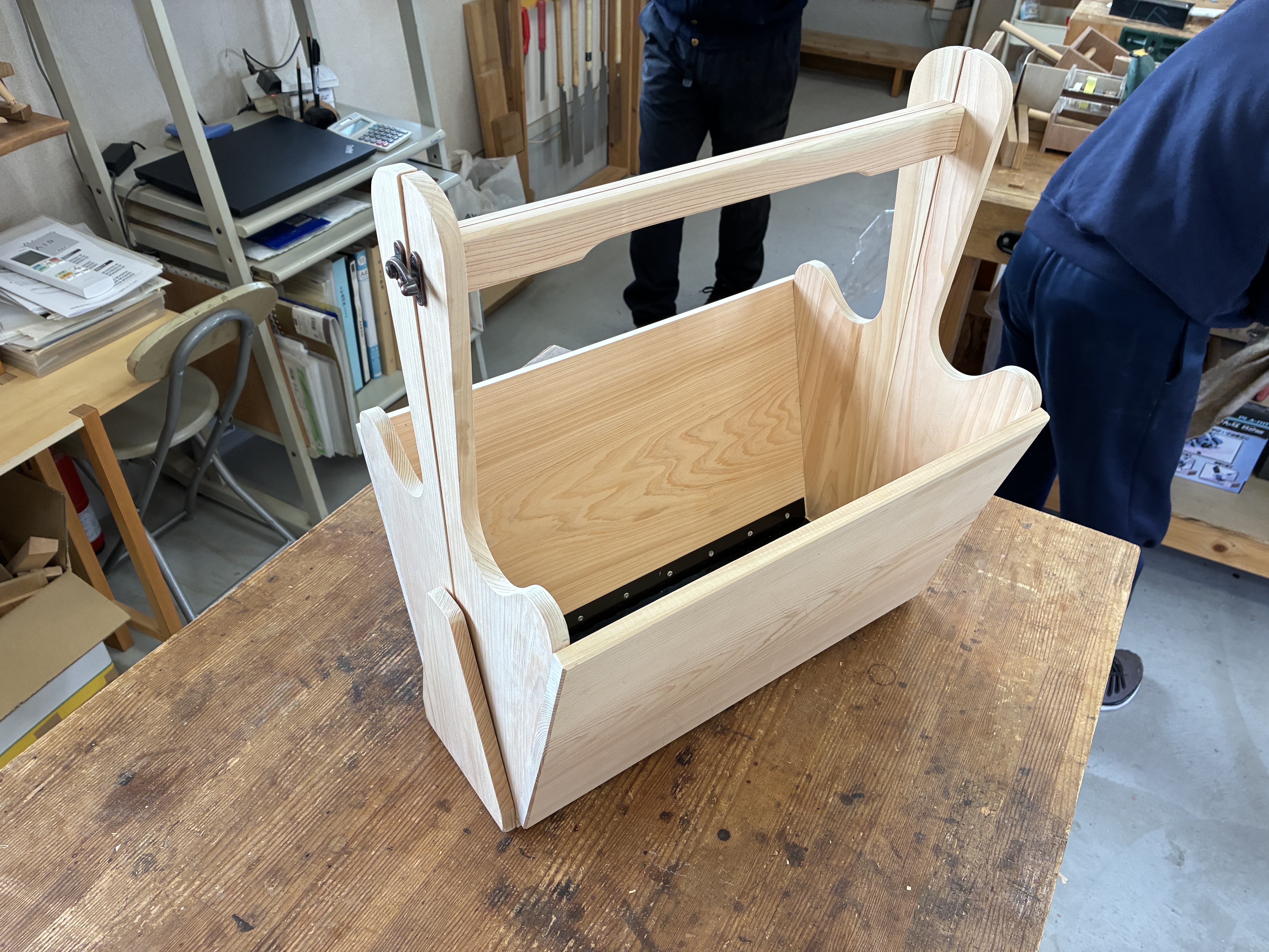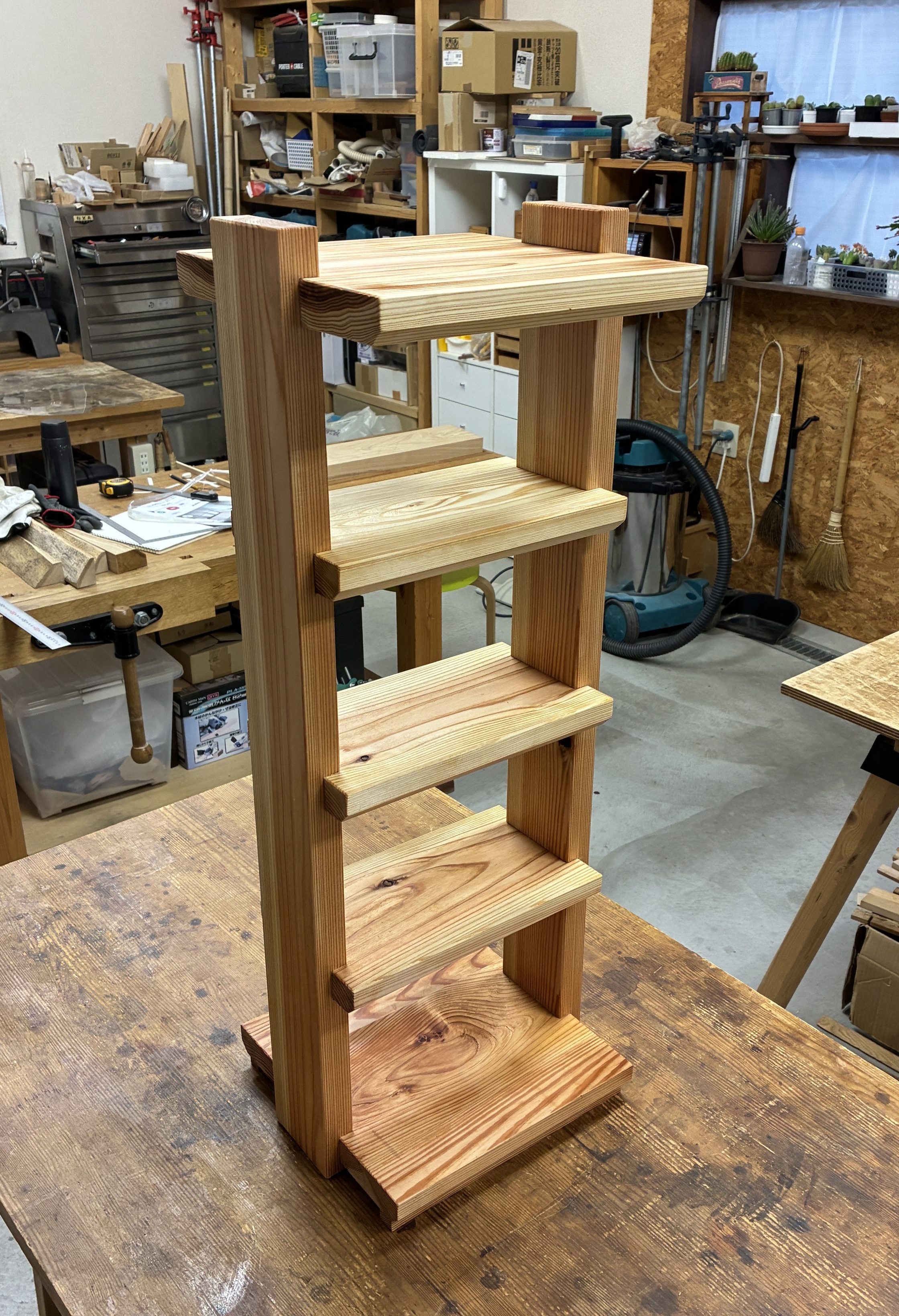 次なるオリジナル作品はこれ。とてもかわいいです、やはり裏山ヒノキ製。見た目の通りマガジンラックではあるのです。が、