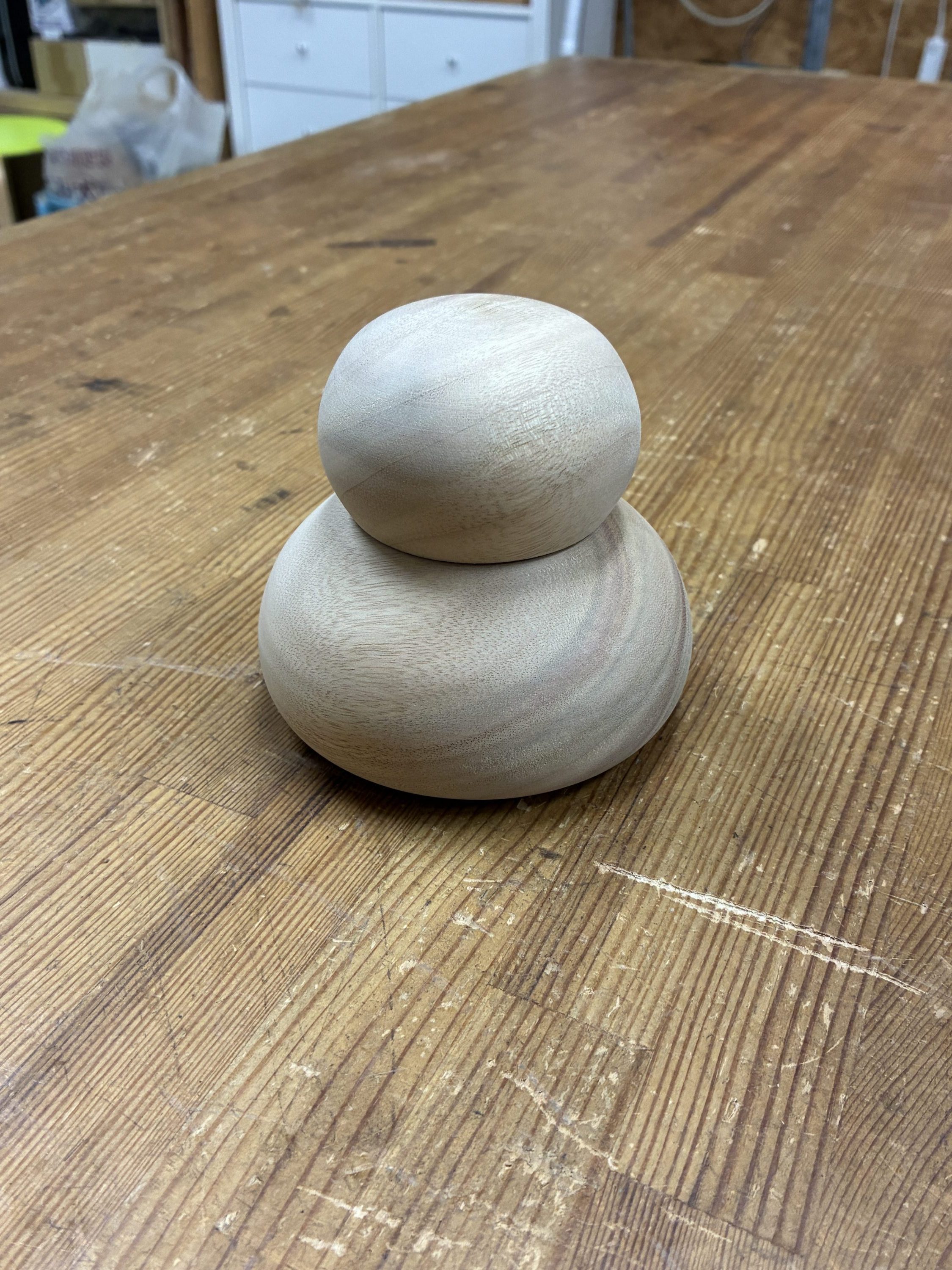 年末には、クリスマスツリーを作りたいとの事でしたが時間が足りず、旋盤を駆使した鏡餅になりました。上に乗せるだいだい(みかん?)は木製じゃなくて多分本物になるかと思います(笑)