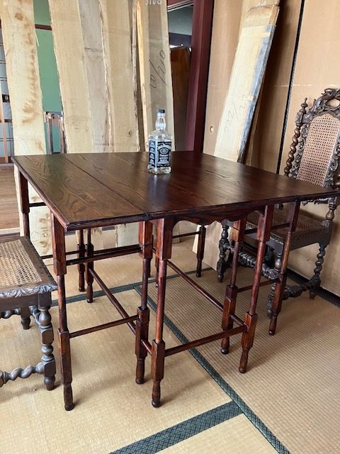 折り畳み式の大きな栗のテーブルもやはり拭き漆仕上げです。
