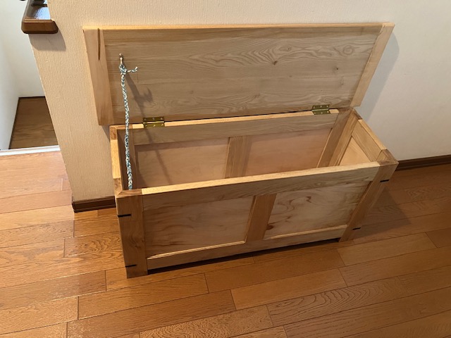 これは欧米でブランケットケースと呼ばれる家具。ベッドのそばにおいて毛布やひじ掛けを収納するクラシック家具です。