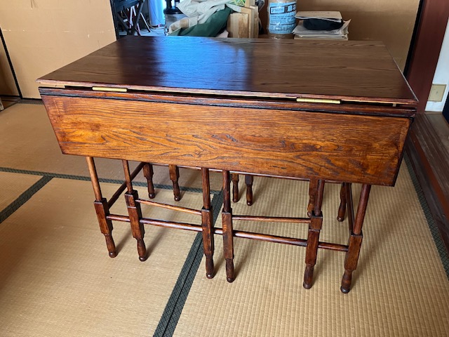 折り畳み式の大きな栗のテーブルもやはり拭き漆仕上げです。