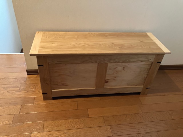 これは欧米でブランケットケースと呼ばれる家具。ベッドのそばにおいて毛布やひじ掛けを収納するクラシック家具です。